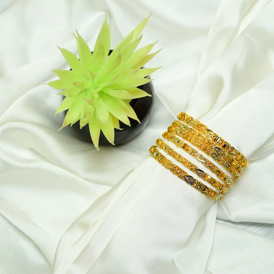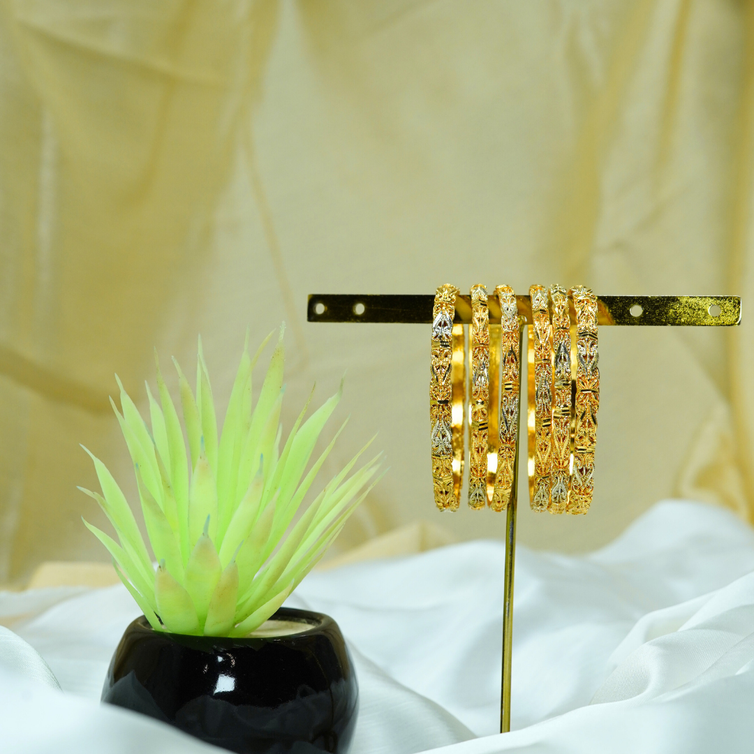Shine effortlessly with this 6-piece gold-plated bangle set. High-quality polish, long-lasting shine, and stylish design ideal for every occasion.