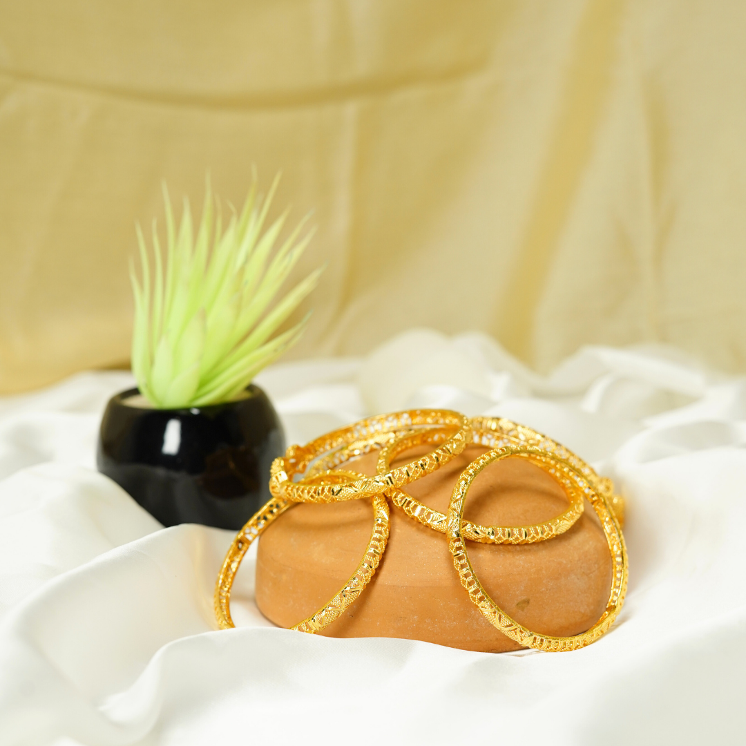 Artificial gold-plated set with 2 side bangles and 4 center chooriyan