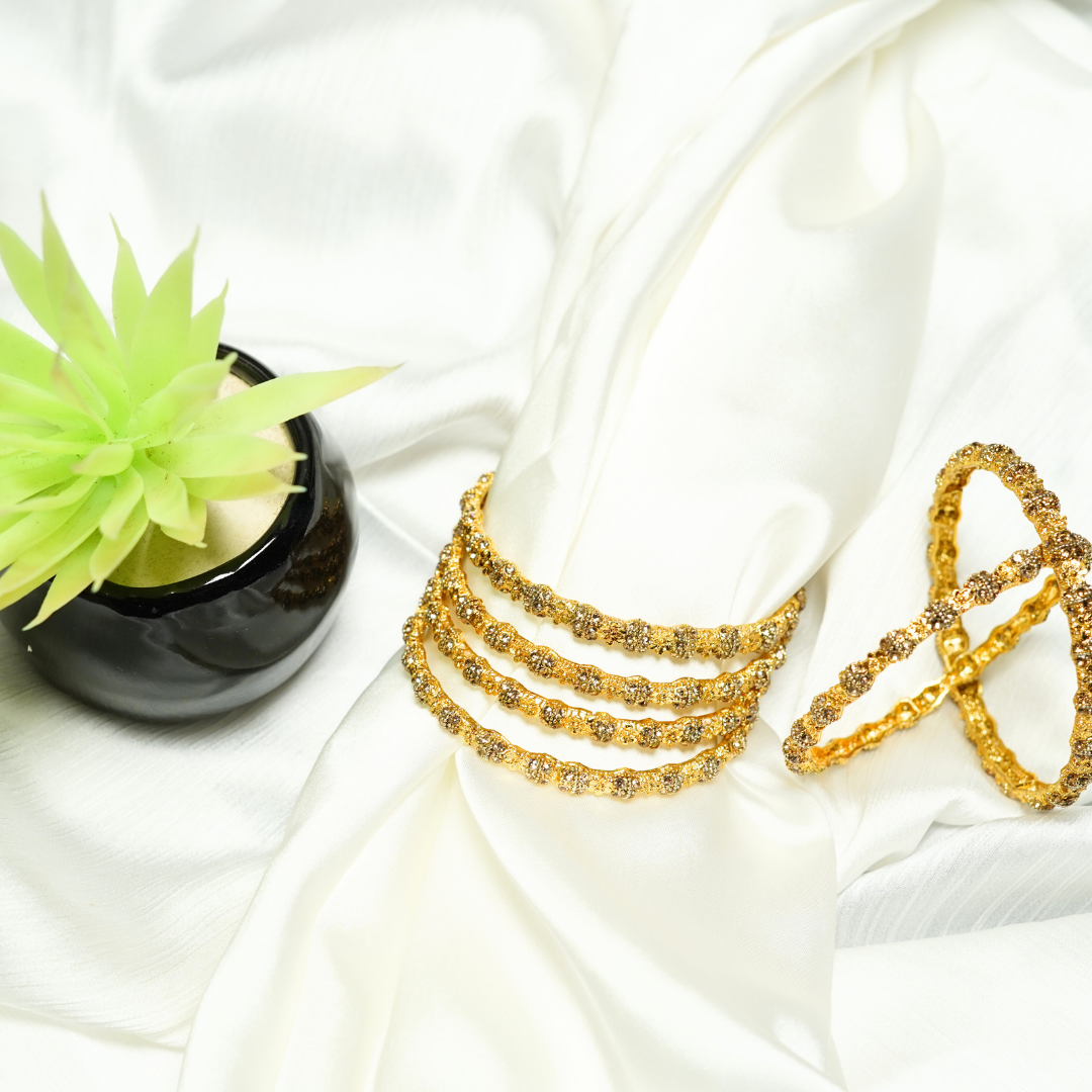 Shine effortlessly with this 6-piece gold-plated bangle set. High-quality polish, long-lasting shine and stylish design ideal for every occasion.